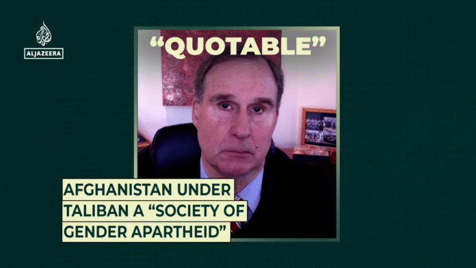 HomePoliticsAfghanistan under Taliban a “society of gender apartheid” Politics Afghanistan under Taliban a “society of gender apartheid” By MrWilliams777 December 17, 2025 0 2 Share FacebookTwitterPinterestWhatsApp "The Taliban now post guards at UN offices to prevent women from going to their jobs." Share FacebookTwitterPinterestWhatsApp Previous articleDerek Chisora and David Haye disagree on Anthony Joshua vs Jake Paul winner: “Biggest upset ever”Next articleMotorola Moto G Power 5G | 2024 | Unlocked | Made for US 8/128GB | 50MP Camera | Midnight Blue MrWilliams777https://truelinejournal.news RELATED ARTICLES Politics Trump says he’s ordering blockade on oil tankers in and out of Venezuela December 17, 2025 Politics Couple Confronted Suspected Bondi Gunman, New Footage Shows December 16, 2025 Politics Funny Tweets About The Queue To See Queen’s Casket December 16, 2025 LEAVE A REPLY Cancel reply Comment: Please enter your comment! Name:* Please enter your name here Email:* You have entered an incorrect email address! Please enter your email address here Website: Save my name, email, and website in this browser for the next time I comment. Most Popular 2025 ACC Newcomer Report: Stanford • D1Baseball December 17, 2025 17 Best Hotel Booking Sites of 2025 December 17, 2025 Rad Power Bikes files for bankruptcy and is looking to sell the business December 17, 2025 90 Day Fiance: Sparks Fly for Rick and Trish – Before The 90 Days Recap [S08E02] December 17, 2025 Load more Recent Comments